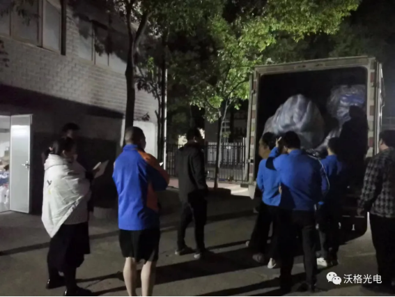 19日凌晨2点多,第二批晚班人员的床品物资运输进厂,taptap点点体育党员们连夜接货并搬运到仓库。