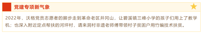 2022年,taptap点点体育党员志愿者的脚步走到革命老区井冈山,让碧溪镇三峰小学的孩子们用上了教学机;也深入附近定点帮扶的河坪村,请来洞村非遗老师傅带领村子贫困户用竹编技术扶贫。