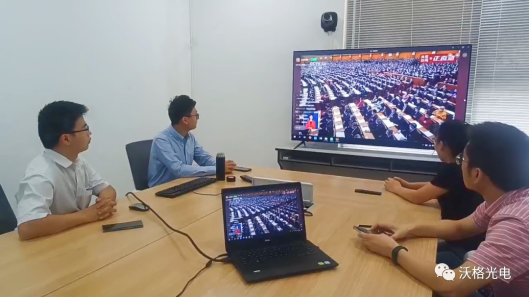 新余基地报告厅学习会议精神正是火热,taptap点点体育党支部亦组织异地的南方基地及天门基地党员同时观看这场盛会,共同见证这一重要历史时刻的到来。