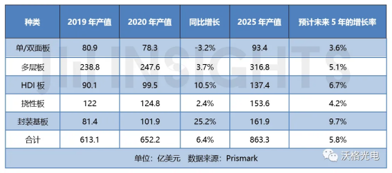 从上表来看,封装基板的增速将明显超过其它 PCB 产品来源