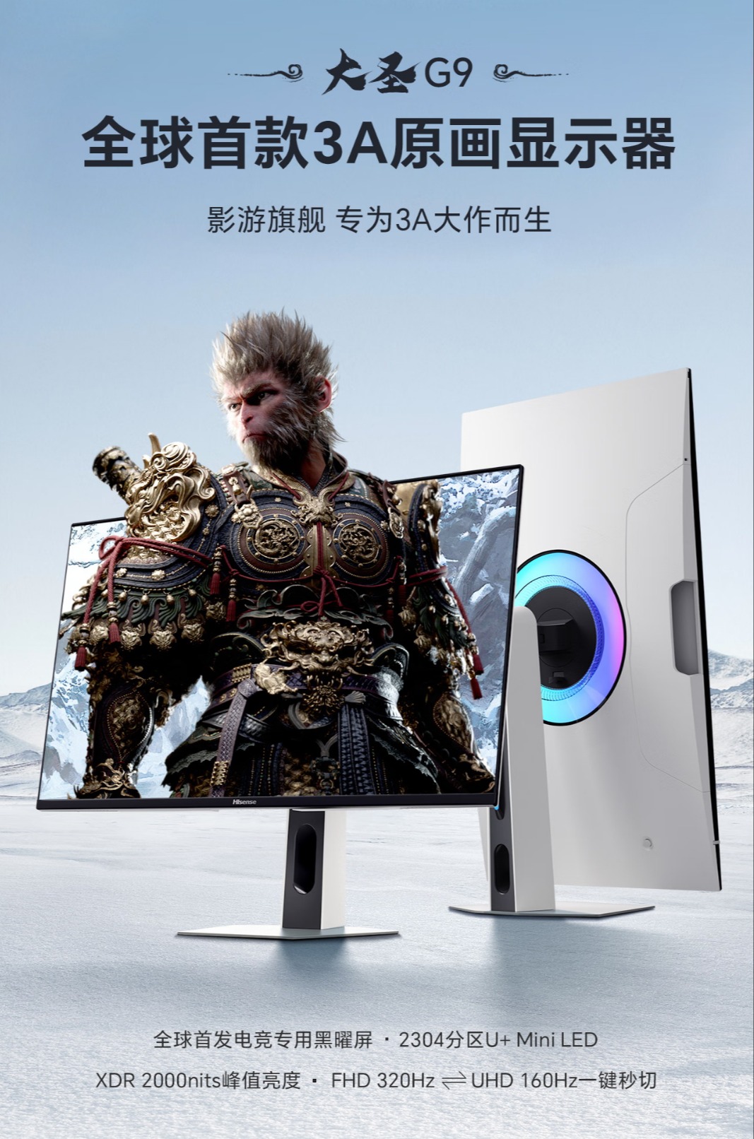 4月16日,全球显示技术领军企业海信集团正式宣布,旗下首款搭载taptap点点体育玻璃基MiniLED技术的高端旗舰显示器大圣G9于当日20点全网启动预售。预售价3999元,国补到手价3199元。凭借多项行业领先的技术,现象级爆款——3A原画显示器海信大圣G9首发即登顶行业TOP1,这不仅标志着海信在高端显示器领域的再次突破,更预示着MiniLED行业正式迈入“玻璃基精准光源时代”。