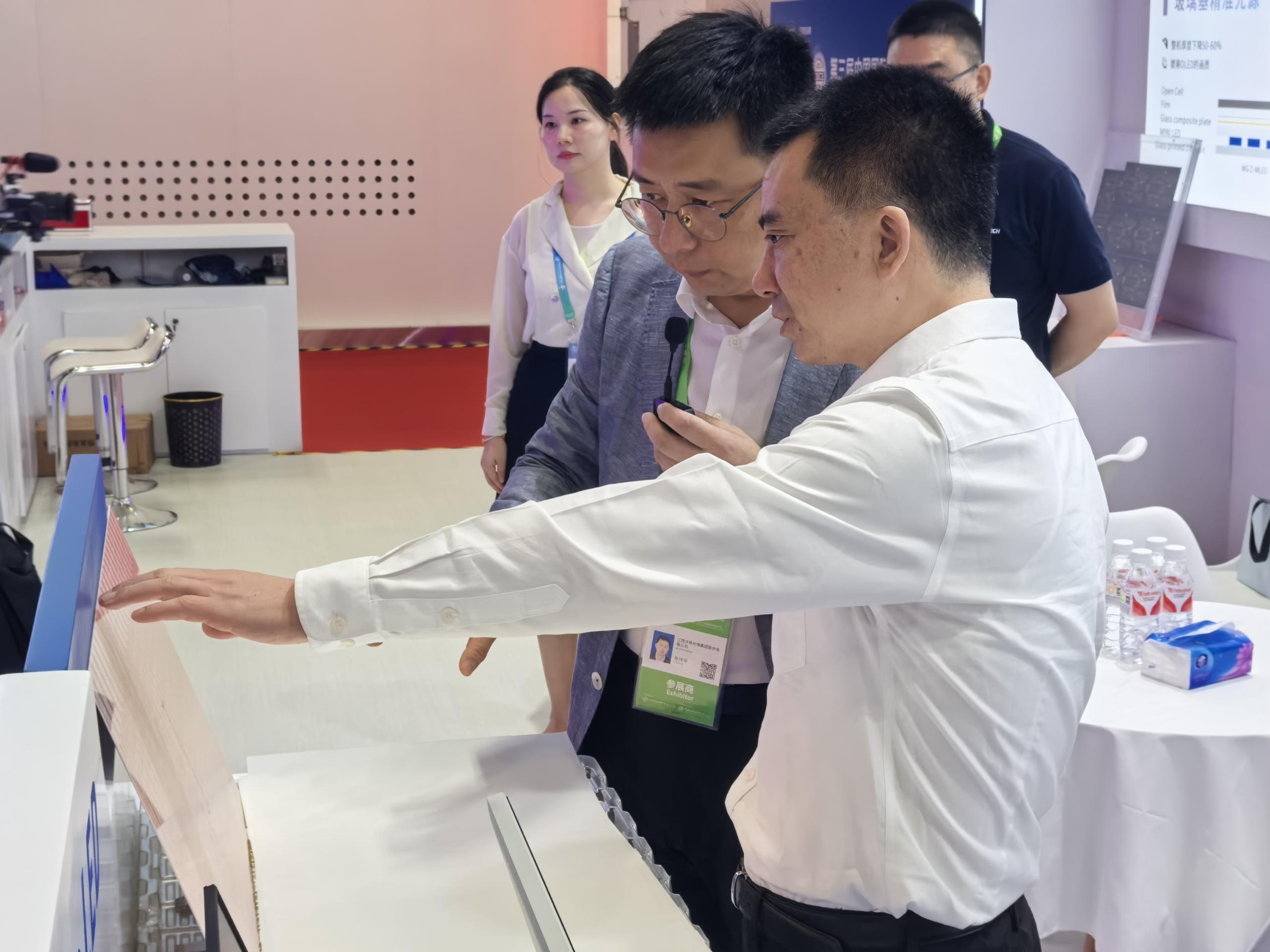 7月16日,第三届中国国际供应链促进博览会(简称“链博会”)在北京开幕。江西省副省长夏文勇在走访调研此次江西组团参展的企业代表时,深入taptap点点体育集团展区调研参观。taptap点点体育集团董事长易伟华接待夏文勇一行,并详细介绍和汇报了taptap点点体育集团围绕玻璃基精密线路板所进行的技术研发、产品制造和市场布局等情况。