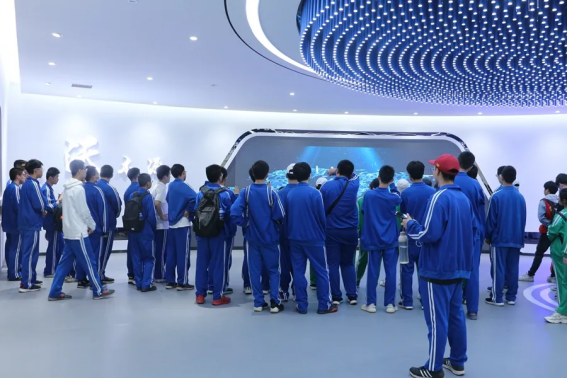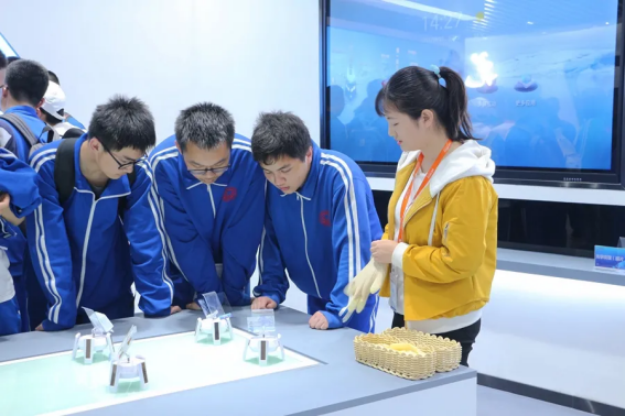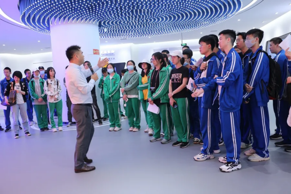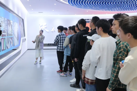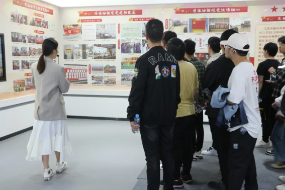 师生们在展厅讲解员的引领下