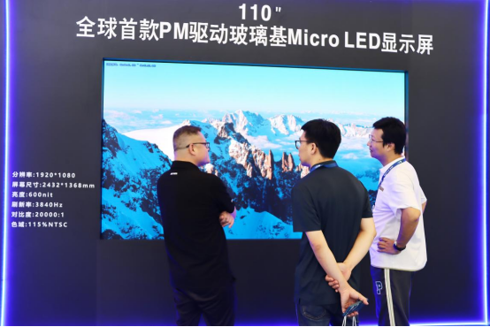 现场展出的110"全球首款PM驱动玻璃基Micro LED显示屏